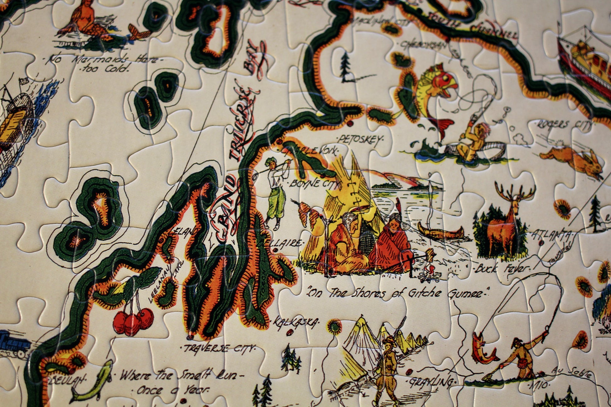 A special collaboration between Puzzles That Rock and the Michiganology! Explore vintage charm with Commonwealth of Michigan. This historic map puzzle offers a nostalgic look at the Great Lakes State, featuring whimsical illustrations of landmarks, wildlife, and Michigan culture. Educational and enchanting!