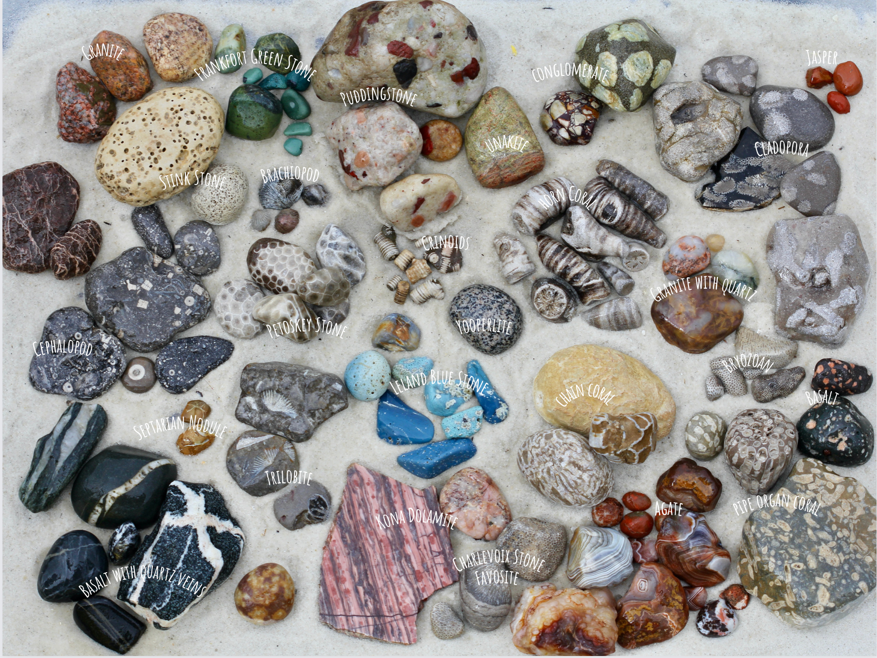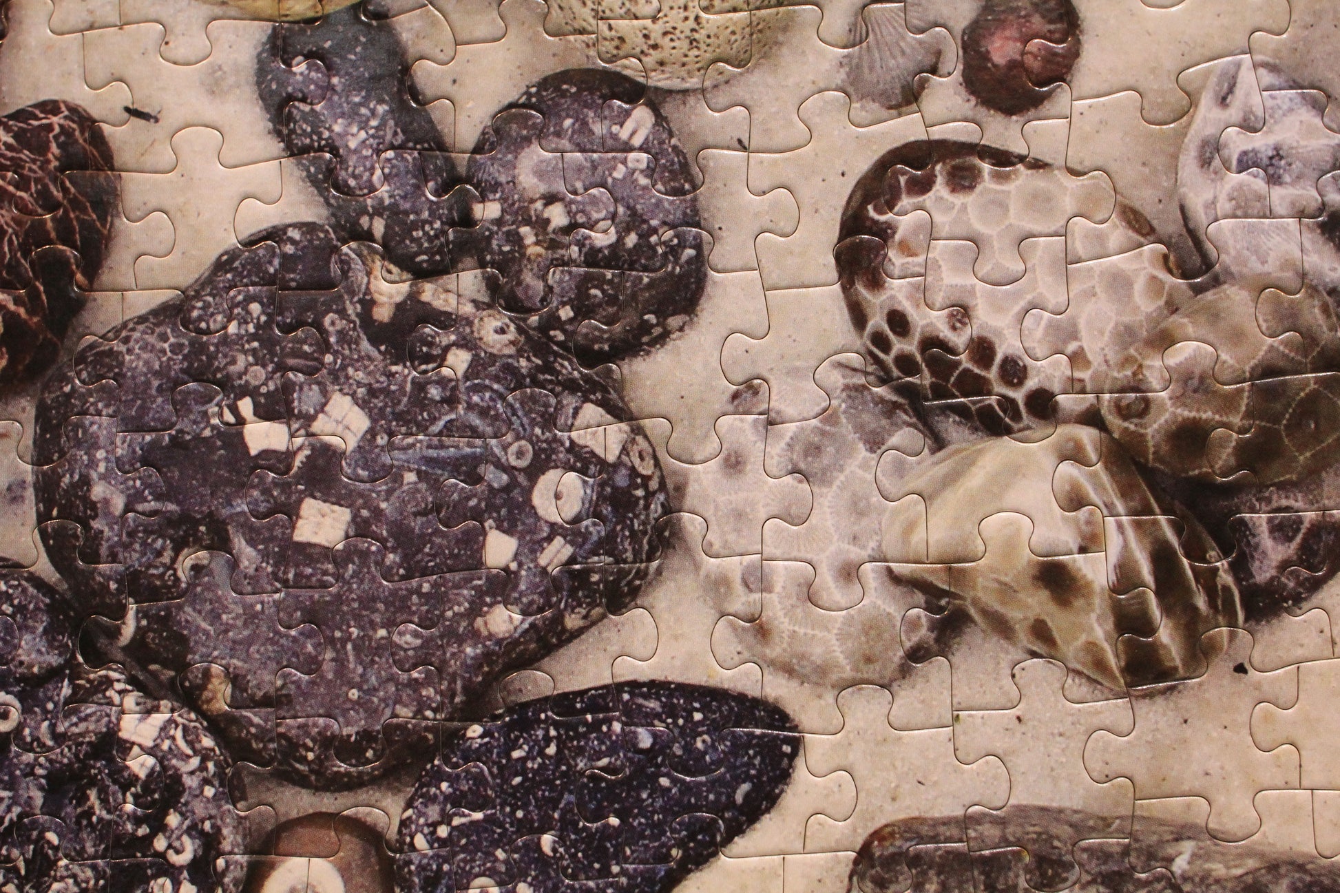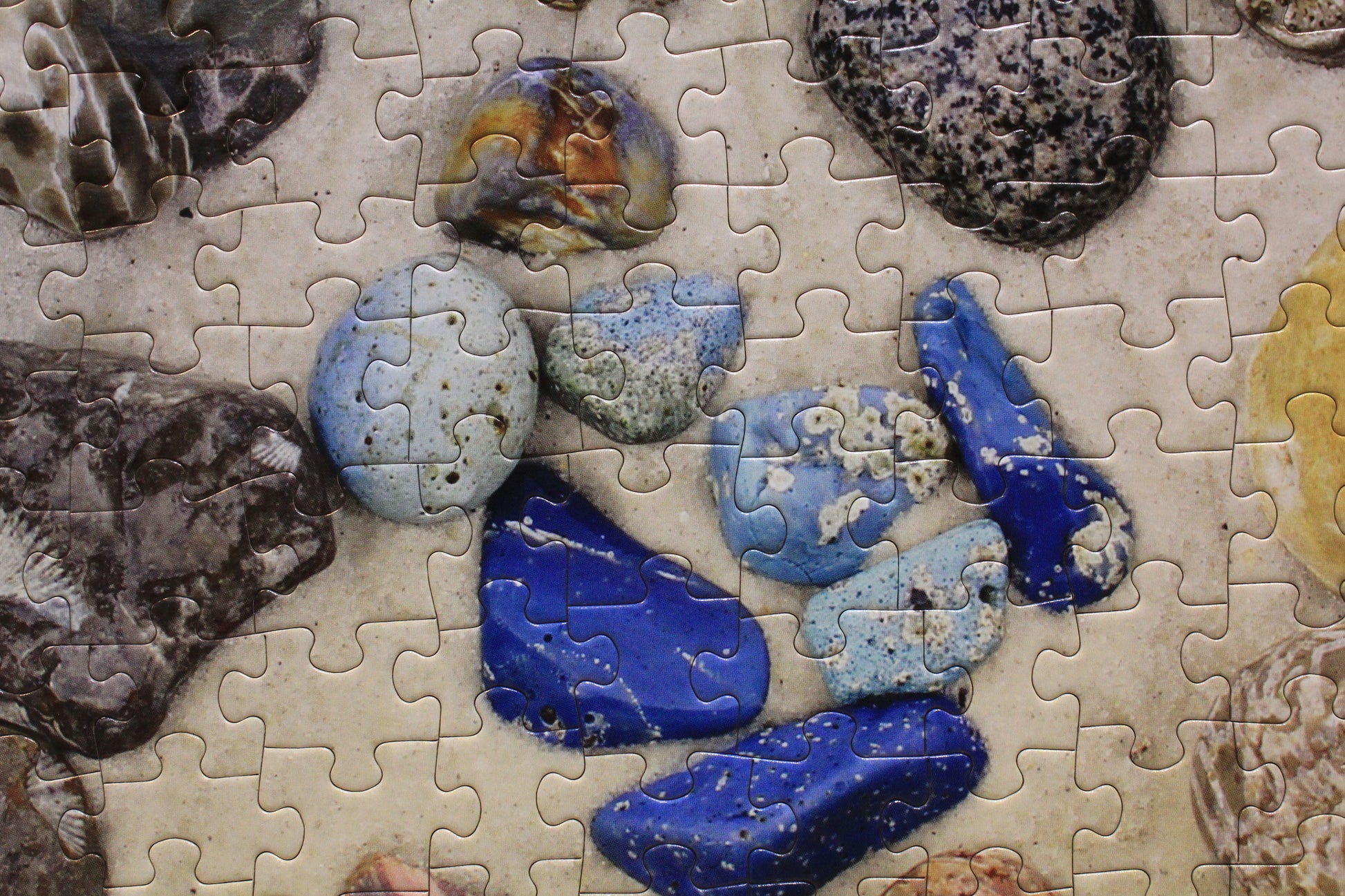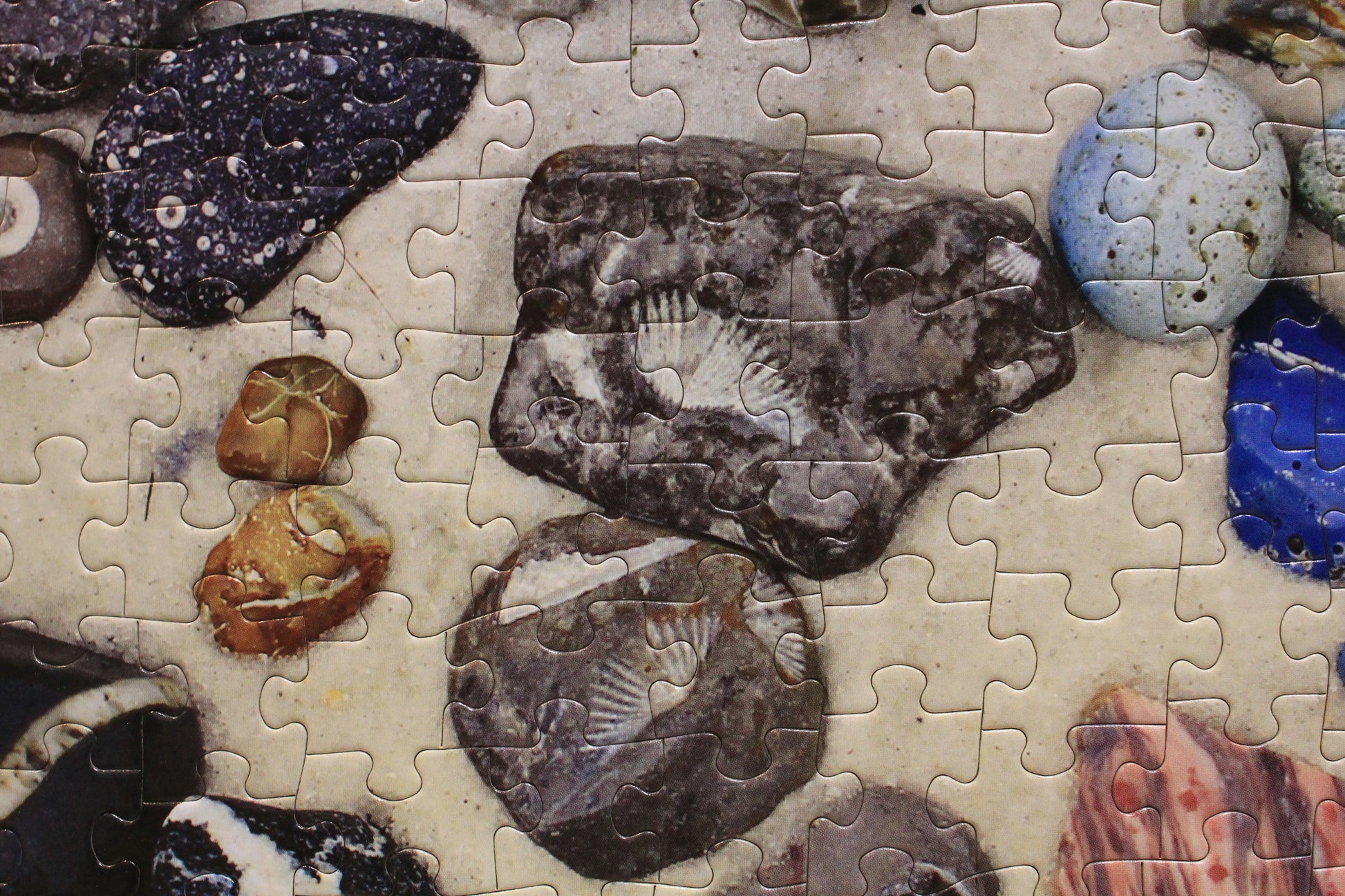 Each stone tells a story—from coral fossils and trilobites to agatized formations and Petoskey stones. The sandy background brings the natural textures to life, making the finished puzzle feel like a hands-on rock hound adventure. It’s both a relaxing challenge and an engaging educational experience.